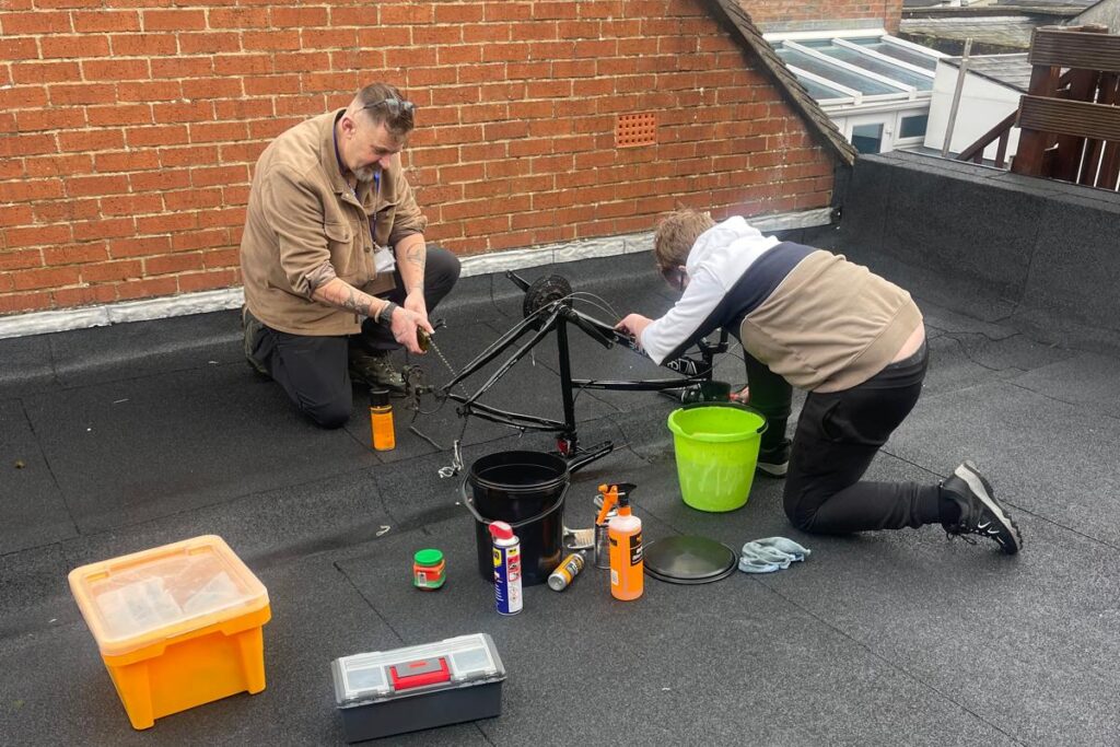 A student learning Baking Skills in our kitchen in the learning centre.